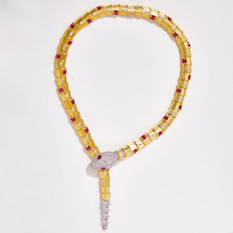45Cm Gold Women Necklace Serpentine Green Zircon Fine Jewelry Necklaces for Ladies