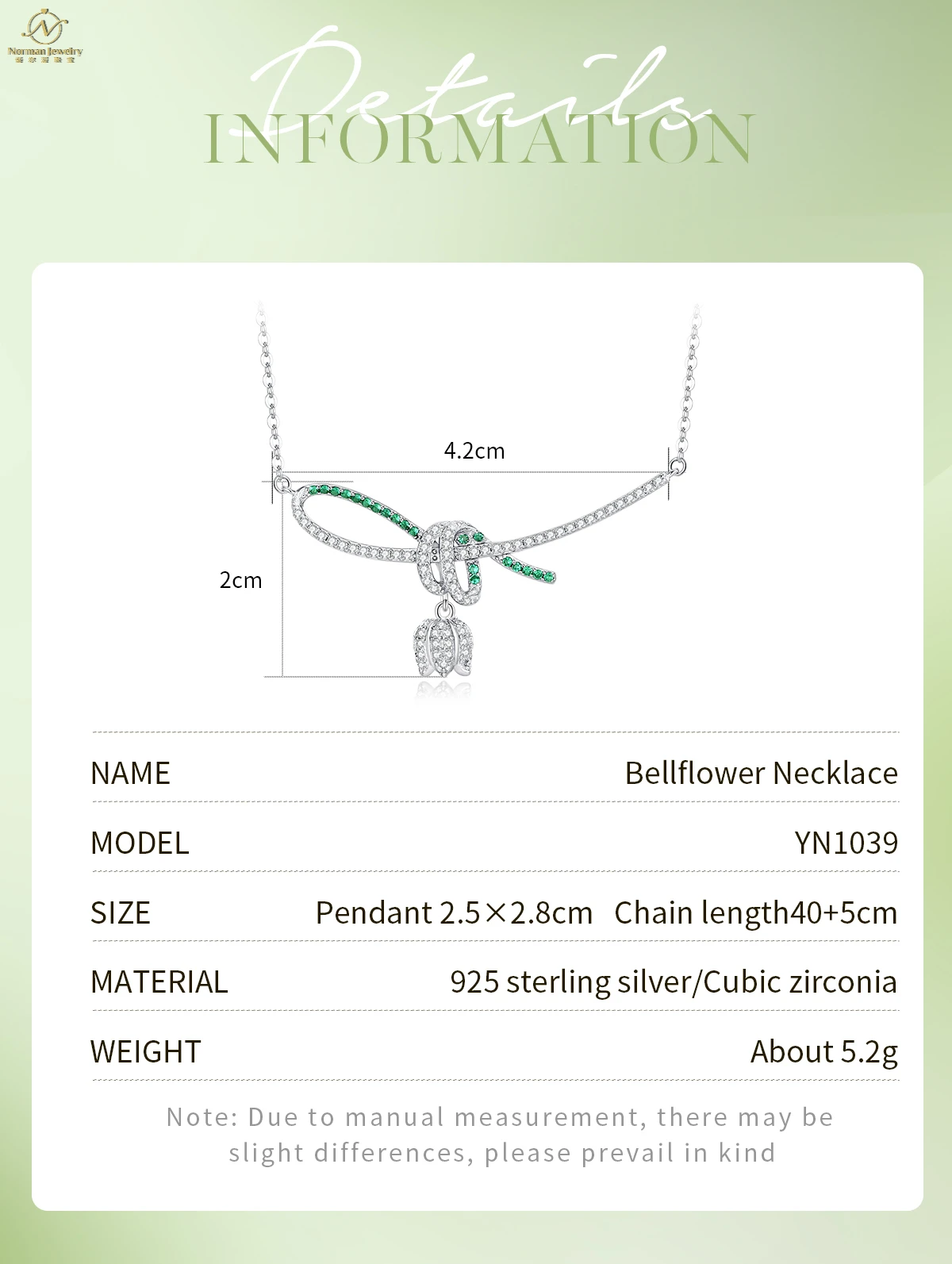 Collection 925S Fine Women's Necklace Spring Bells 5A Zirconia Rhodium Plated Pendant 925 Sterling Weddings Parties