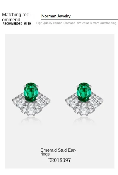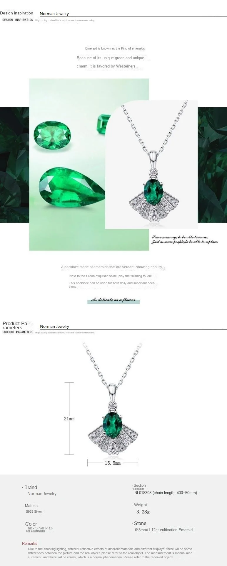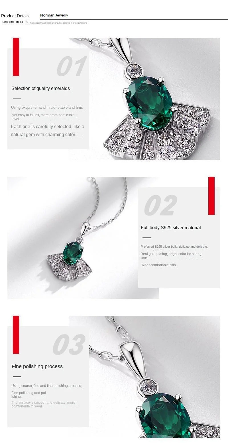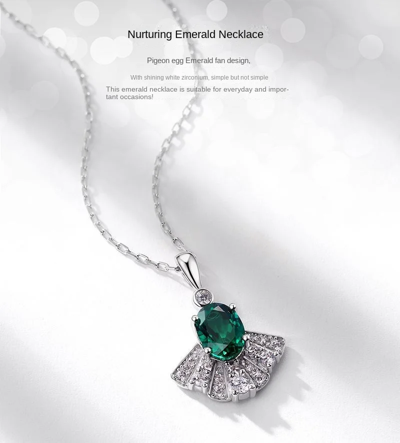 European American Retro Fashion Necklace S925 Silver Cultivated Emerald Cross-Border Small Fan-Shape Clavicle Chain New Luxury