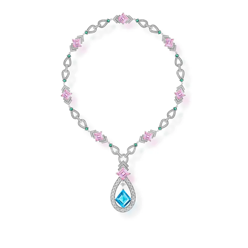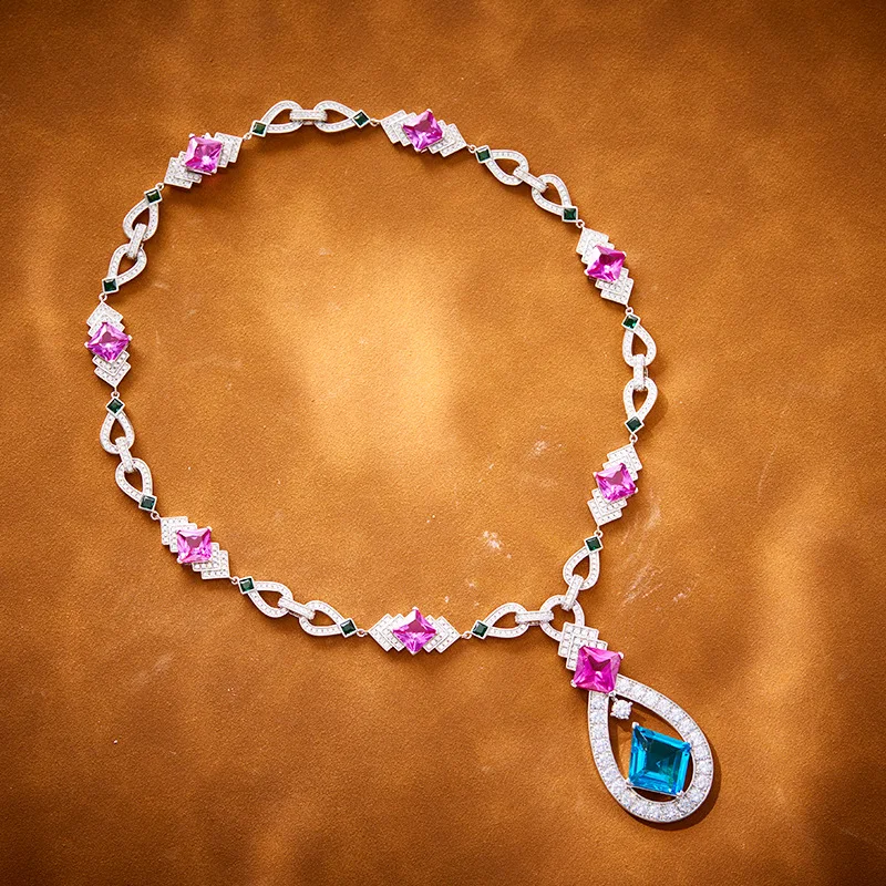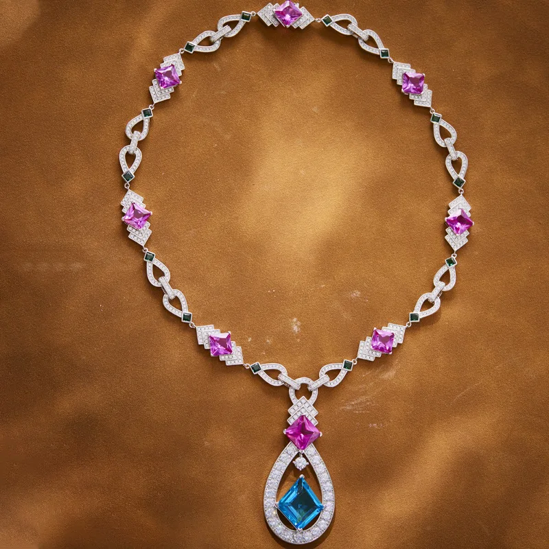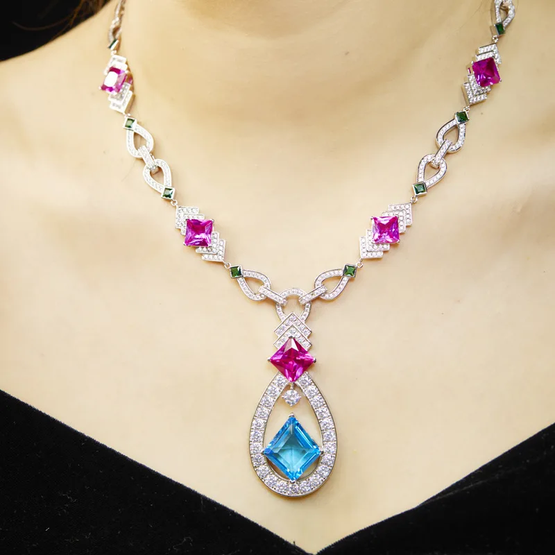 Exquisite Natural Sapphire Necklace Retro Water Droplet Pendant Geometric Gold Jewelry Women's Engagement Rhodium