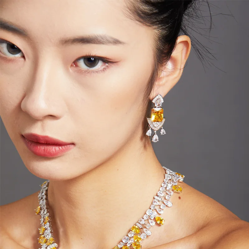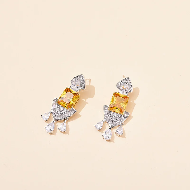 Factory-Designed High-End Yellow Tassel Earrings with Zircon Pearl Diamond Gold Plated on Luxurious Classic Brass for Gifts