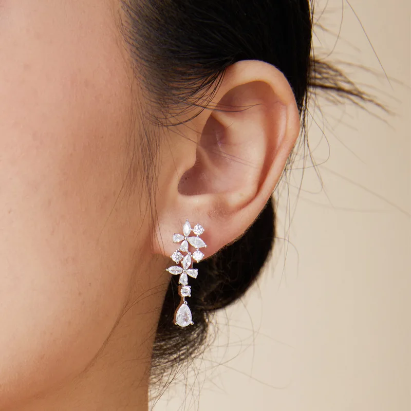 High Quality Fine Jewelry Pear Cut Excellent 18k White Gold Lab Grown Diamond Earrings