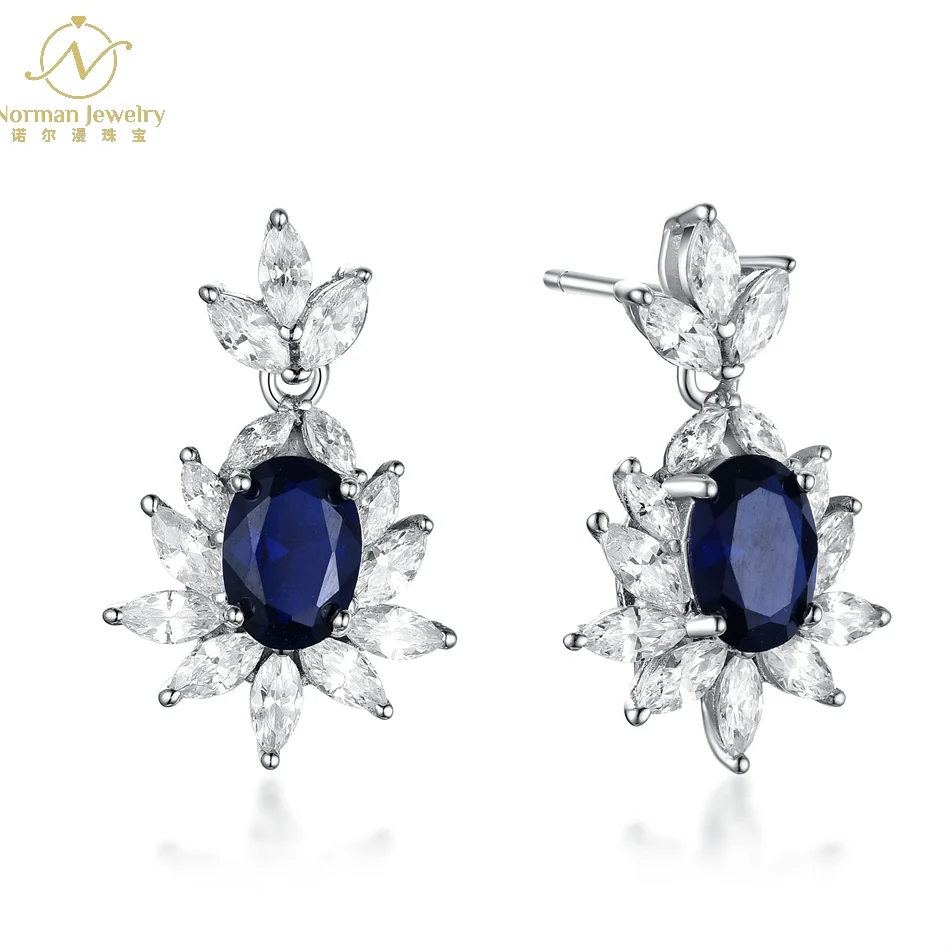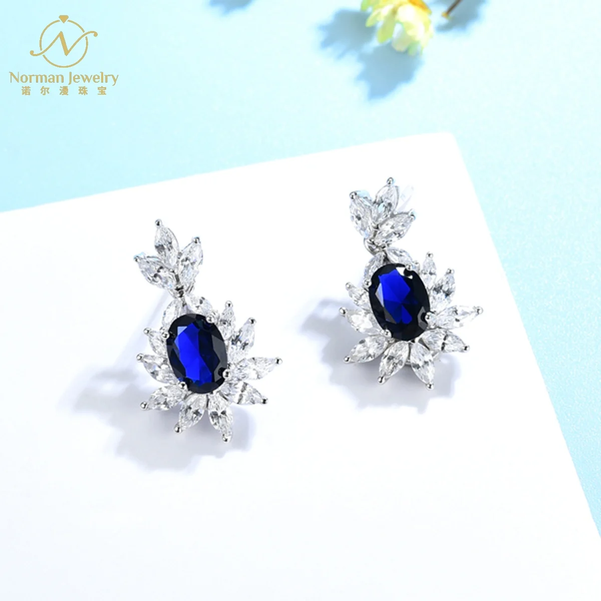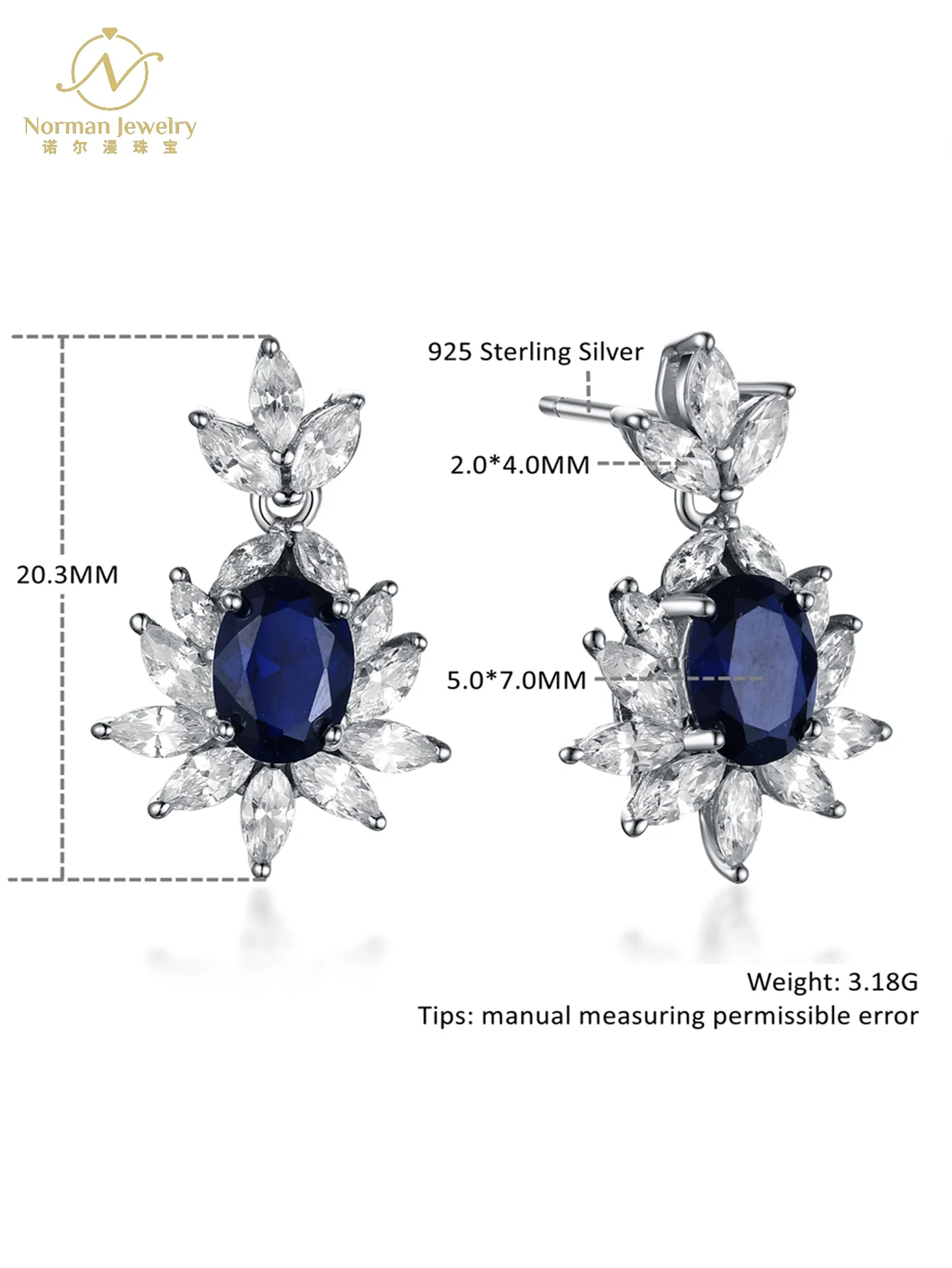 Luxury Gemstone Jewelry White Gold Natural Unheated Cornflower Sapphire Wedding Earrings