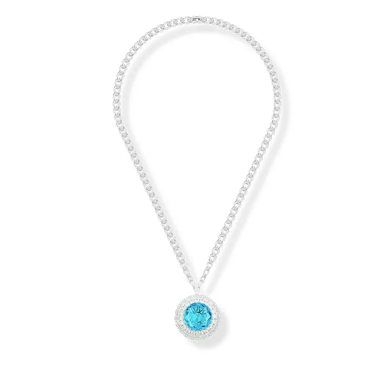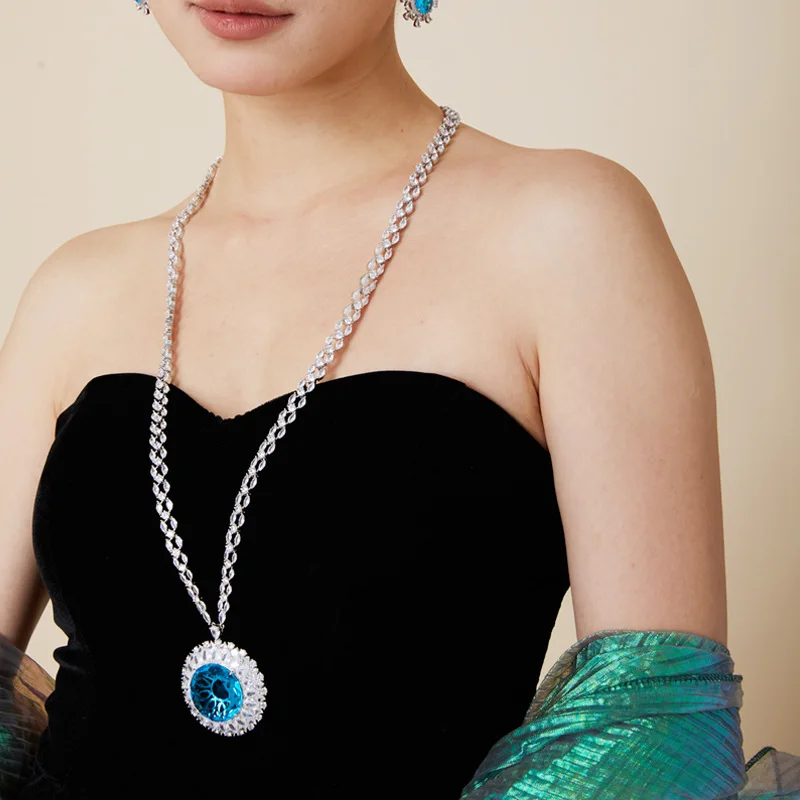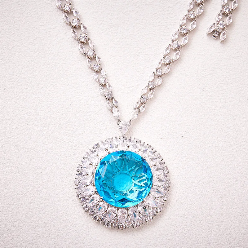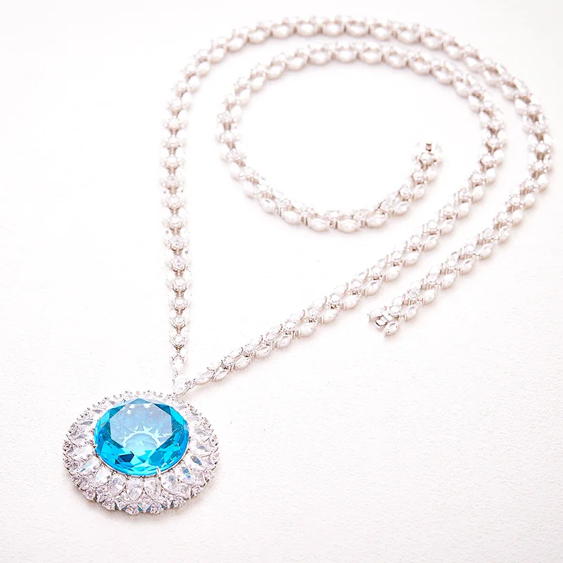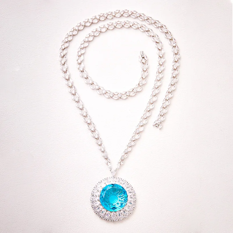 Rhodium Plated Navy Blue Grand Exaggerated Design Treasure Long Necklace Trendy Zircon Inlay for Men Women's Party Mainly Made
