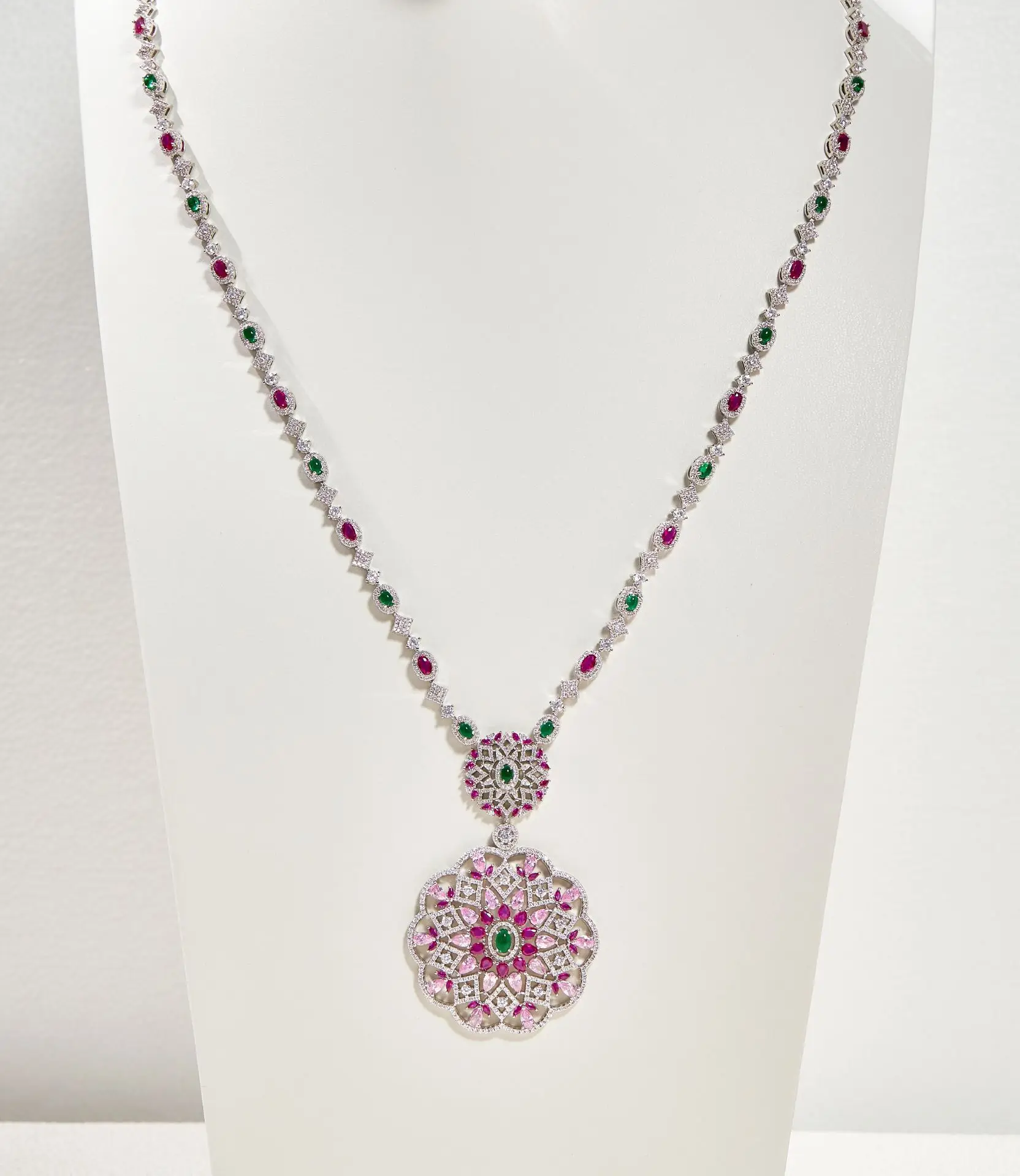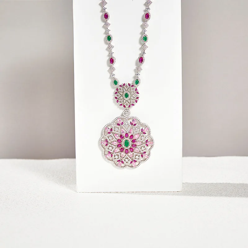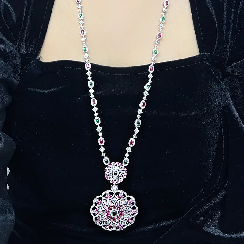 Rhodium Plated Women's Pendant Necklace with Zirconia Inlay Fashionable Luxurious for Wedding Party Evening Wear Sweater Chain