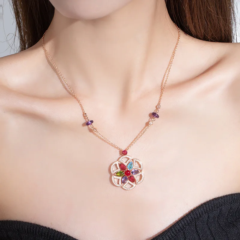 Women's Fine Pendant Necklace New Caibao Micro-Inlaid Gold Plated Atmospheric Fan Shaped Medium Long Sweater